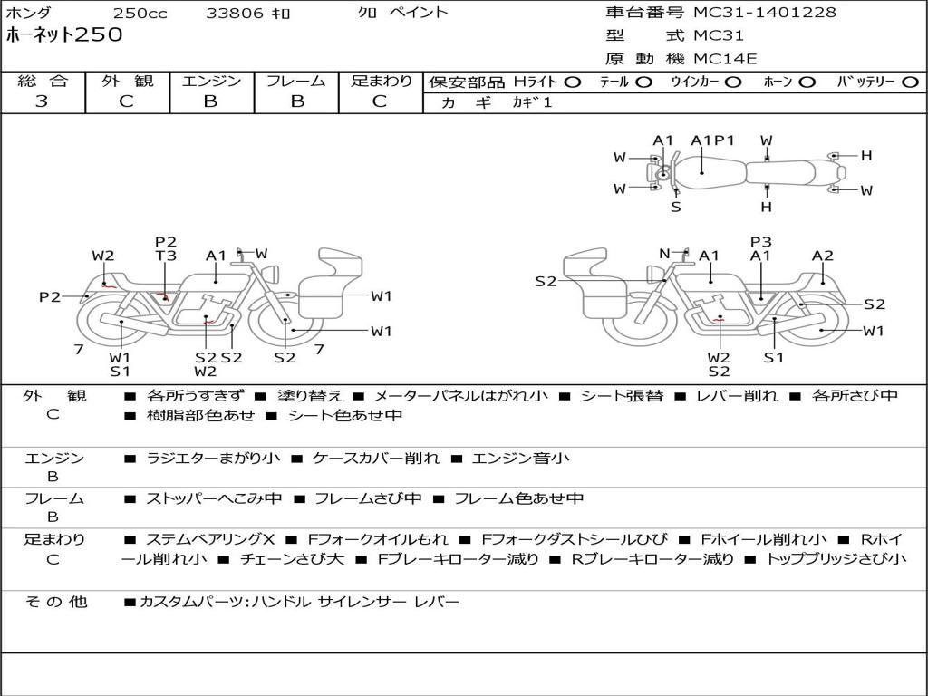| Номер рамы / VIN | MC31-1401228 |
