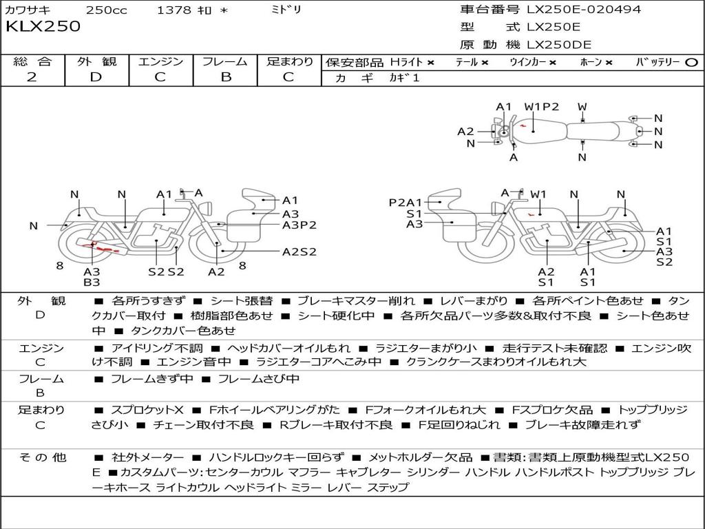 | Номер рамы / VIN | LX250E-020494 |