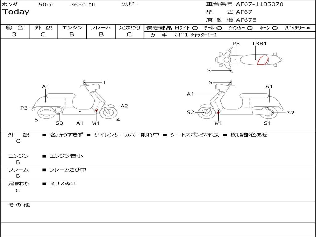 | Номер рамы / VIN | AF67-1135070 |