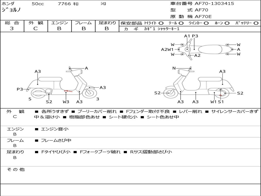 Номер рамы / VIN | AF70-1303415 |