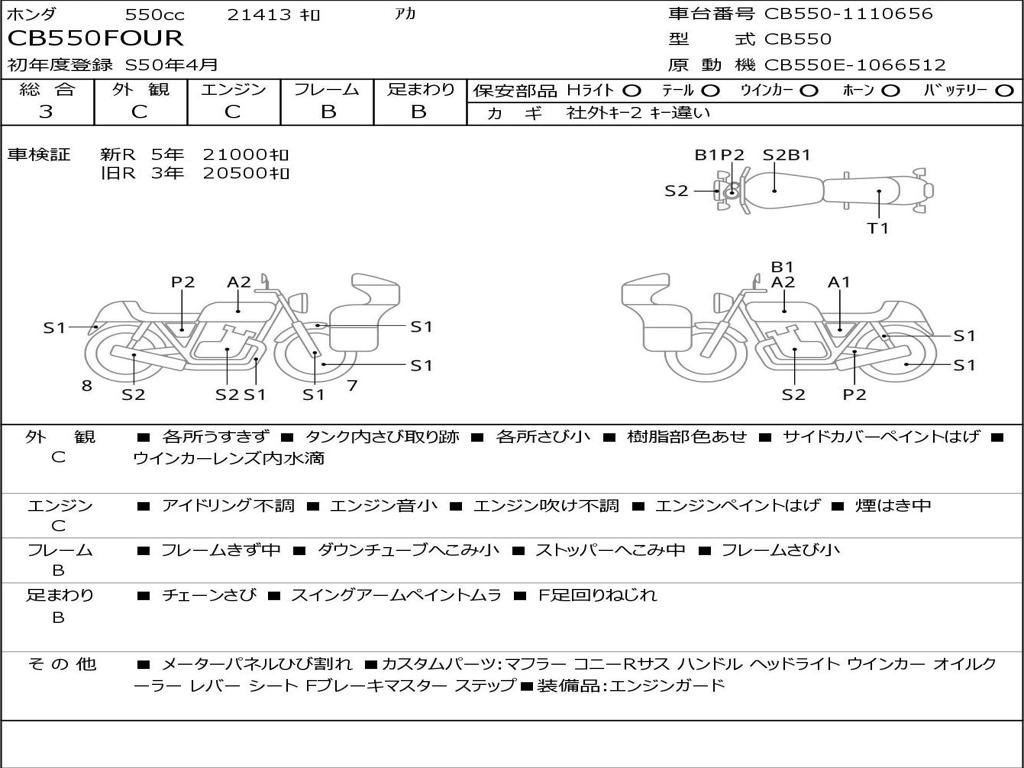 | Номер рамы / VIN | CB550-1110656 |