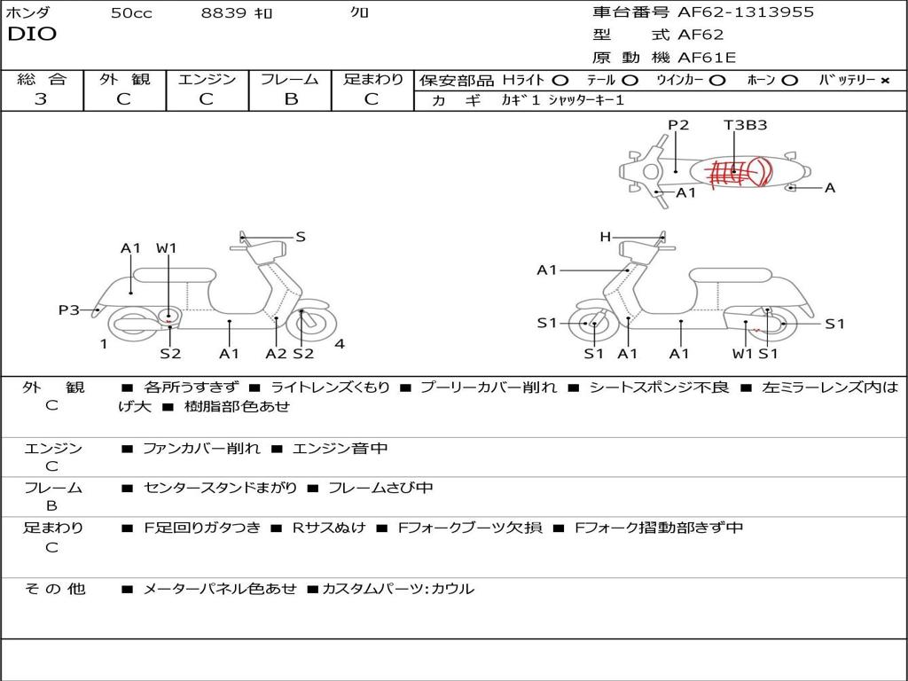 | Номер рамы / VIN | AF62-1313955 |