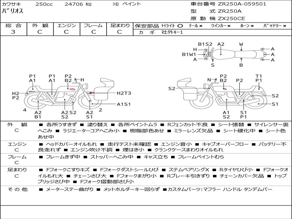 | Номер рамы / VIN | ZR250A-059501 |