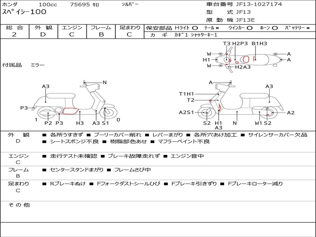 | Номер рамы / VIN | JF13-1027174 |
