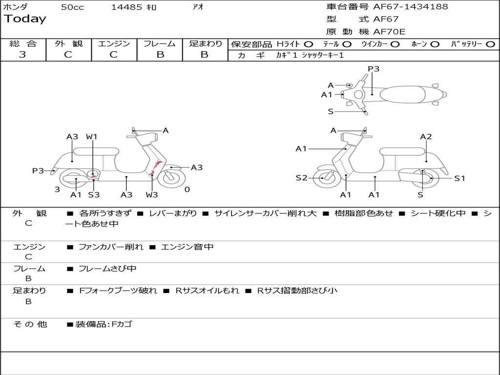 | Номер рамы / VIN | AF67-1434188 |