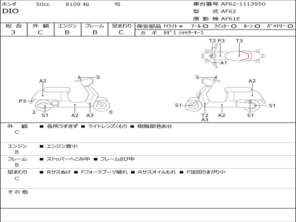 | Номер рамы / VIN | AF62-1113950 |