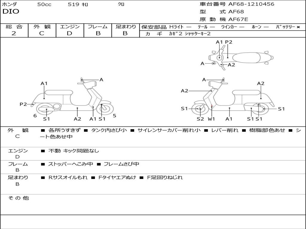 | Номер рамы / VIN | AF68-1210456 |