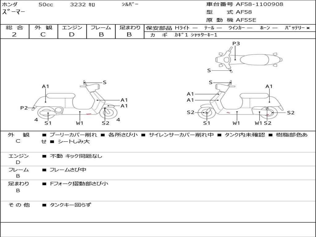| Номер рамы / VIN | AF58-1100908 |