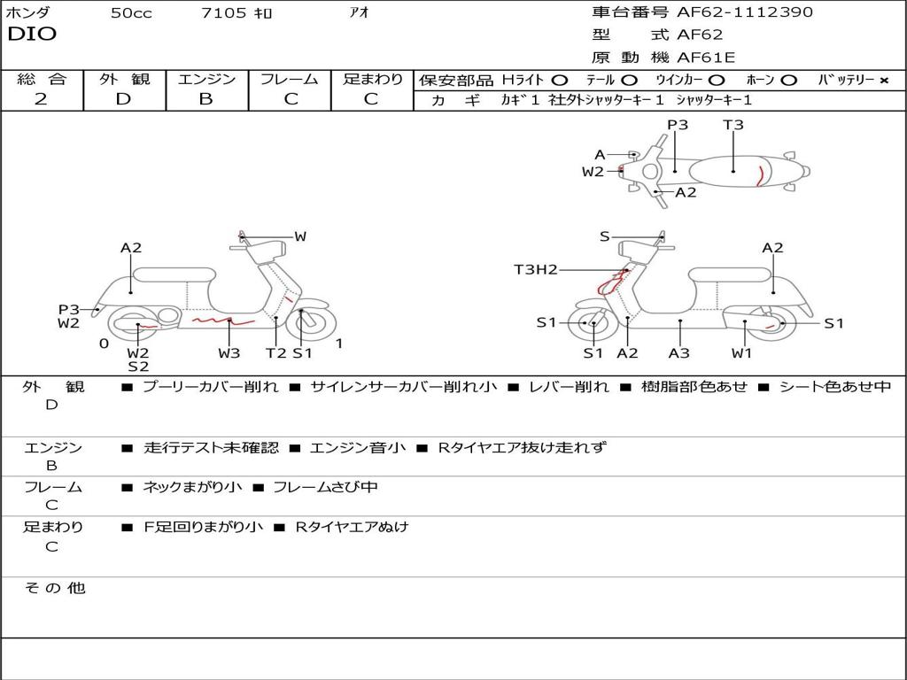 | Номер рамы / VIN | AF62-1112390 |