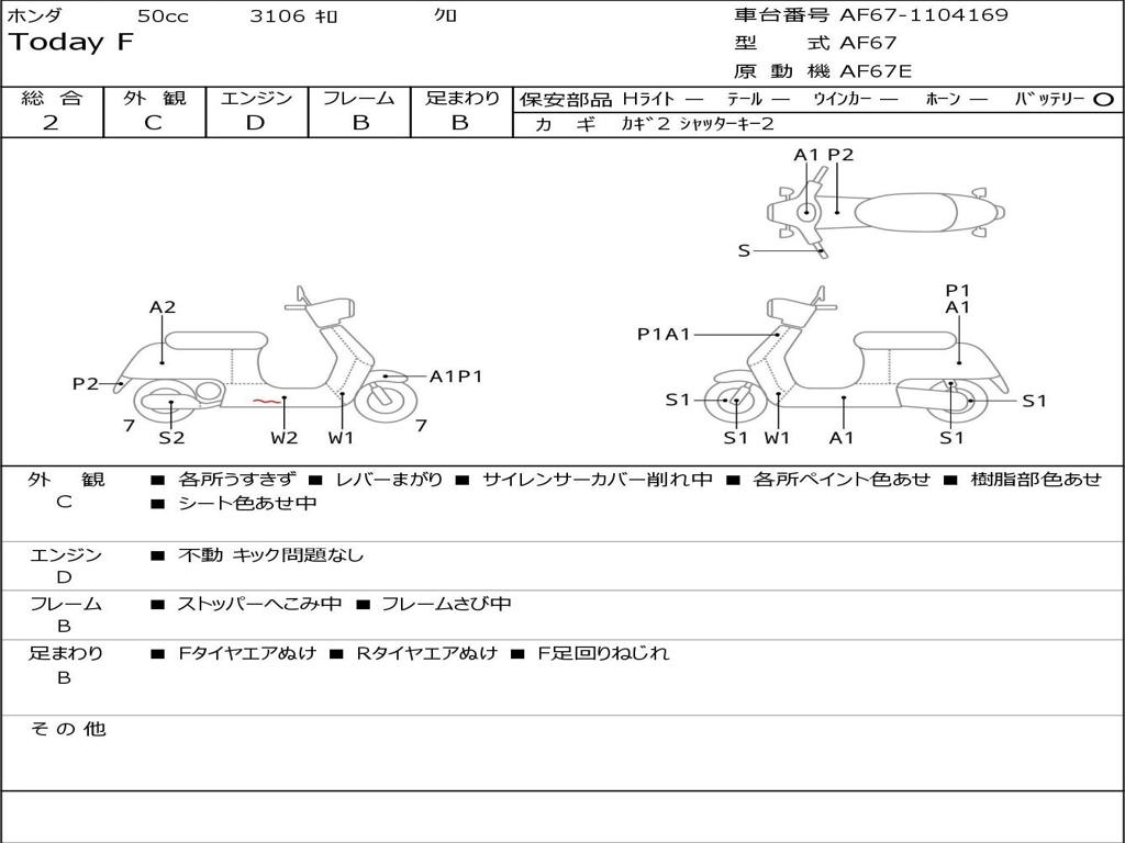 | Номер рамы / VIN | AF67-1104169 |