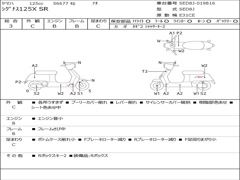 | Номер рамы / VIN | SED8J-019816 |