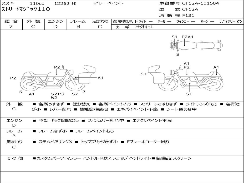 | Номер рамы / VIN | CF12A-101584 |