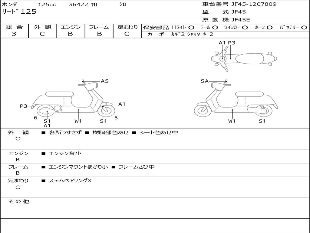 | Номер рамы / VIN | JF45-1207809 |