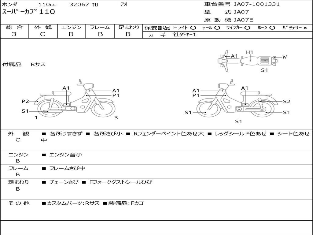 | Номер рамы / VIN | JA07-1001331 |