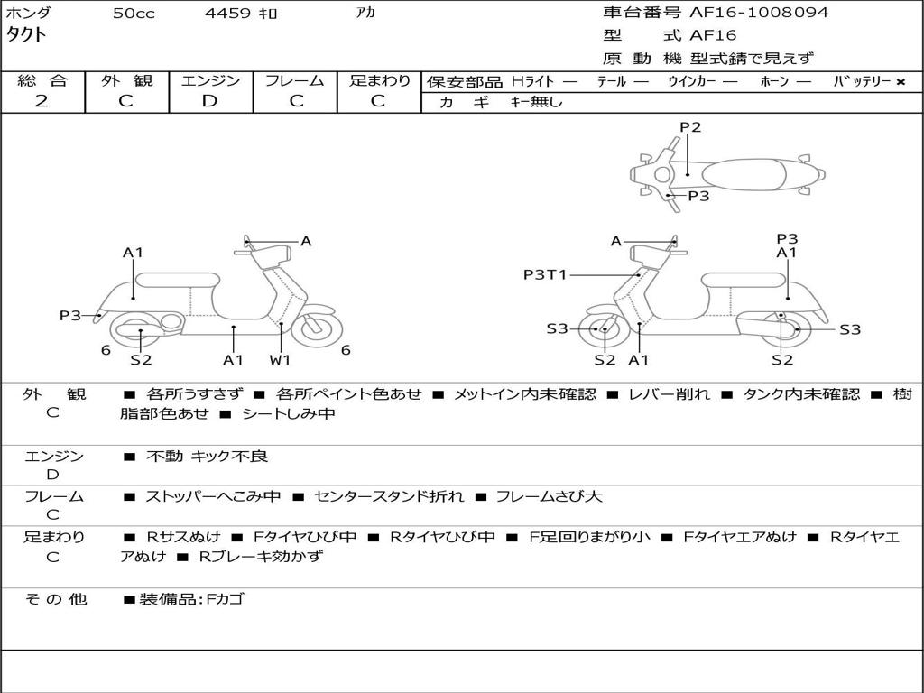 | Номер рамы / VIN | AF16-1008094 |