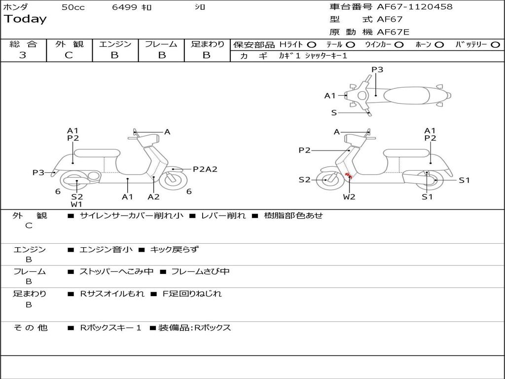 | Номер рамы / VIN | AF67-1120458 |