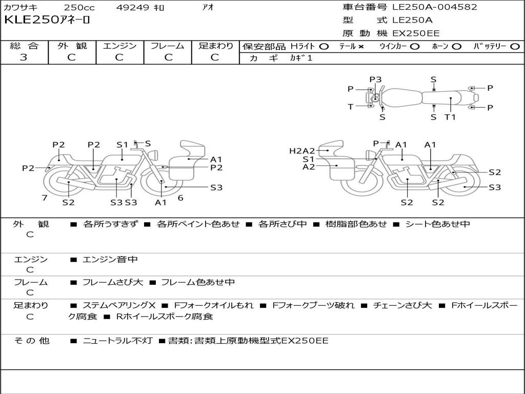 | Номер рамы / VIN | LE250A-004582 |