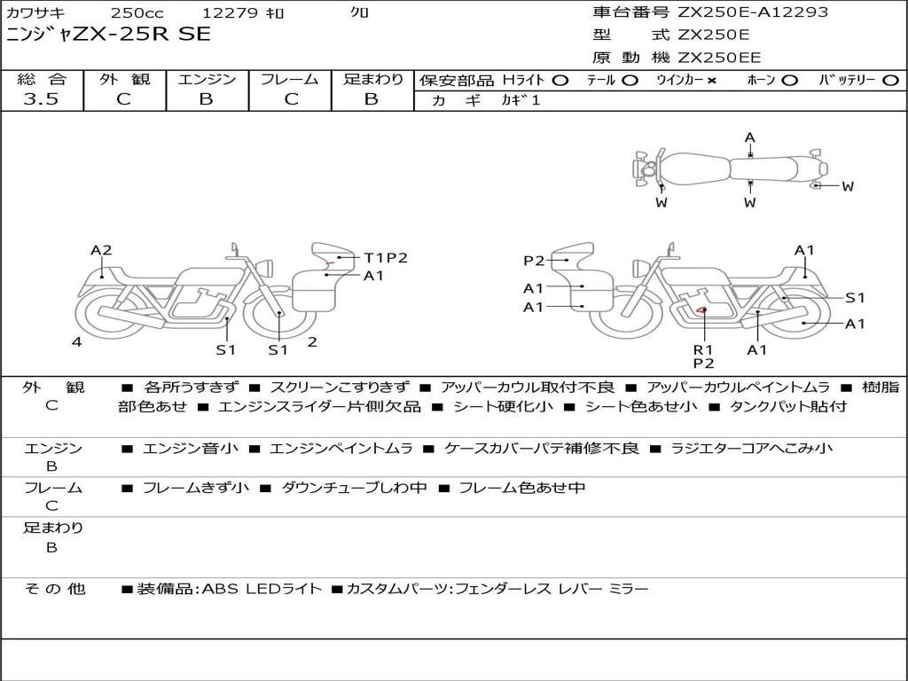 | Номер рамы / VIN | ZX250E-A12293 |