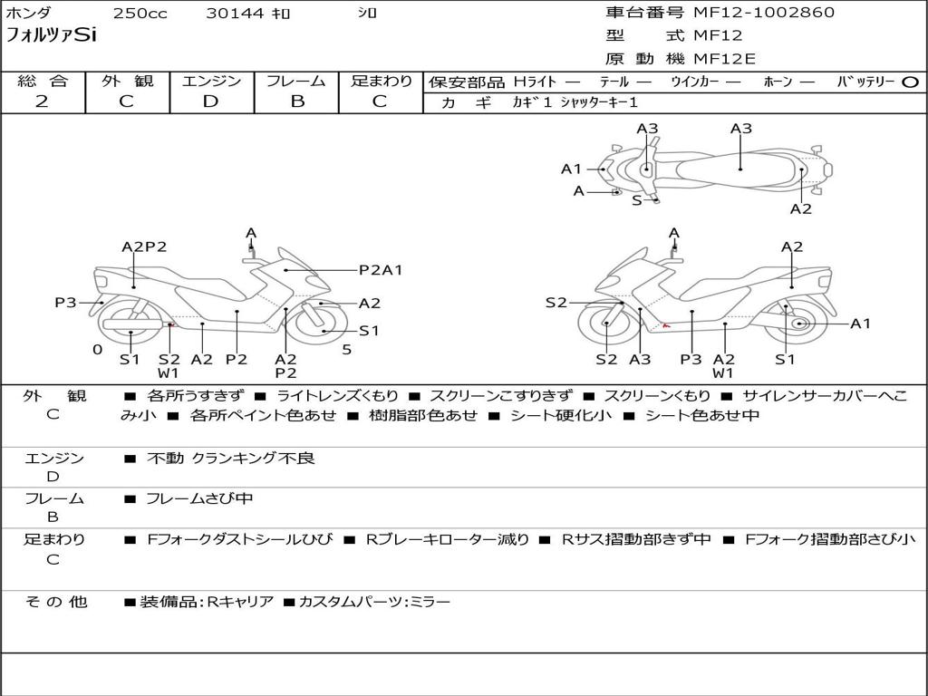 | Номер рамы / VIN | MF12-1002860 |