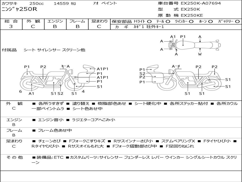 Номер рамы / VIN | EX250K-A07694 |