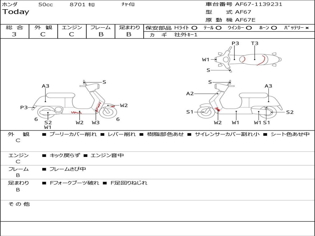 | Номер рамы / VIN | AF67-1139231 |