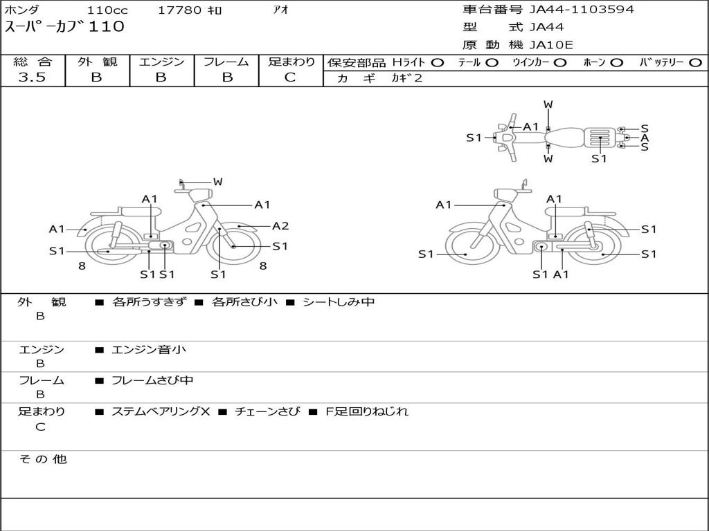| Номер рамы / VIN | JA44-1103594 |
