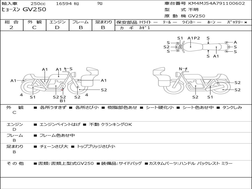 | Номер рамы / VIN | KM4MJ54A791100602 |