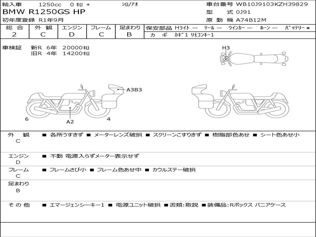 Номер рамы / VIN | WB10J9103KZH39829 |