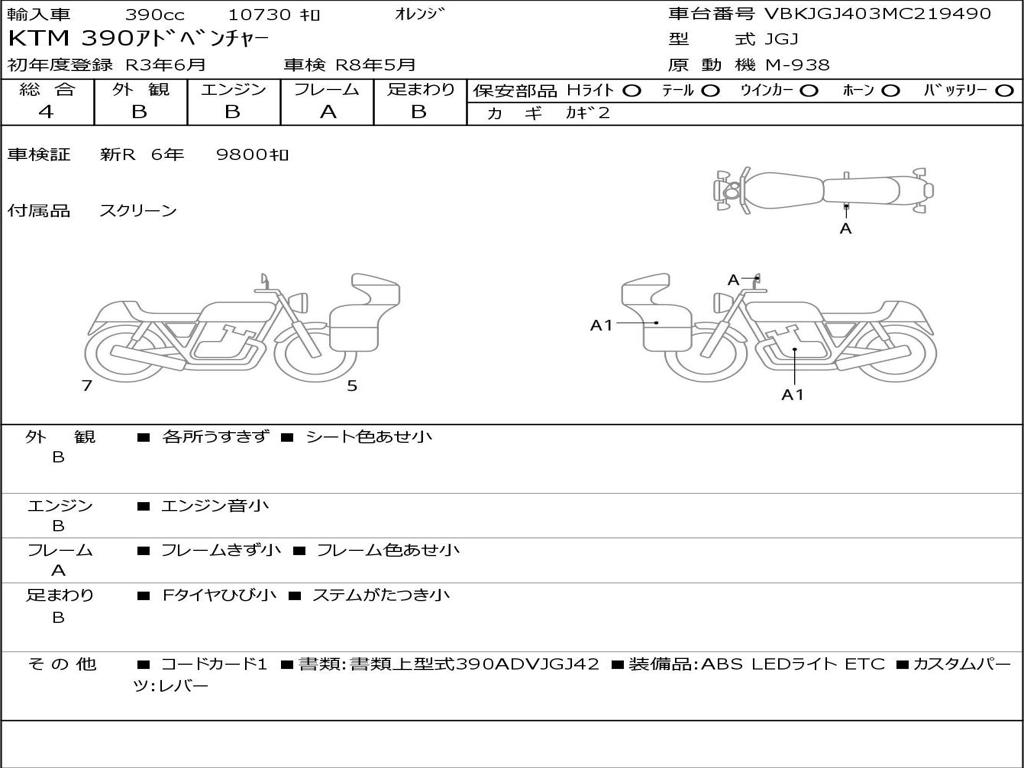 | Номер рамы / VIN | VBKJGJ403MC219490 |