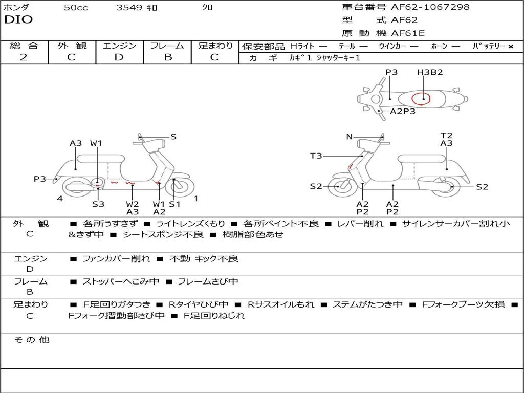 | Номер рамы / VIN | AF62-1067298 |
