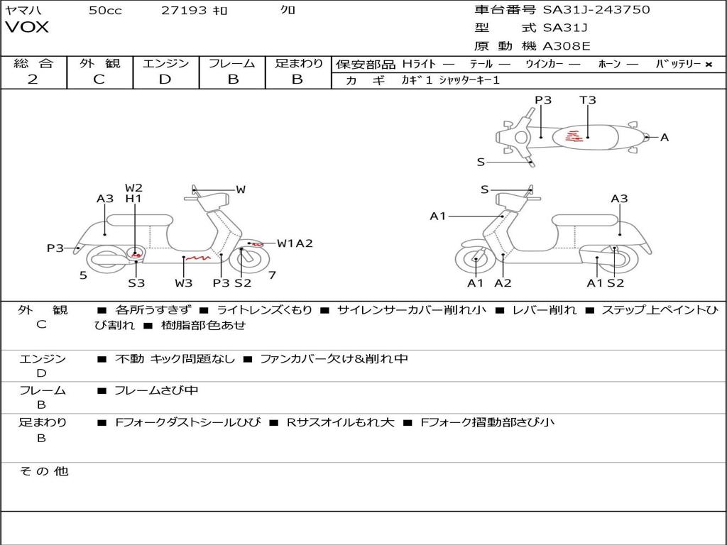 | Номер рамы / VIN | SA31J-243750 |