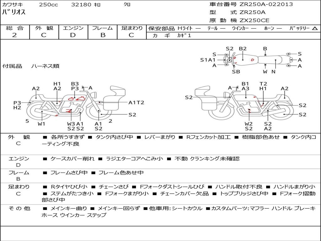 | Номер рамы / VIN | ZR250A-022013 |