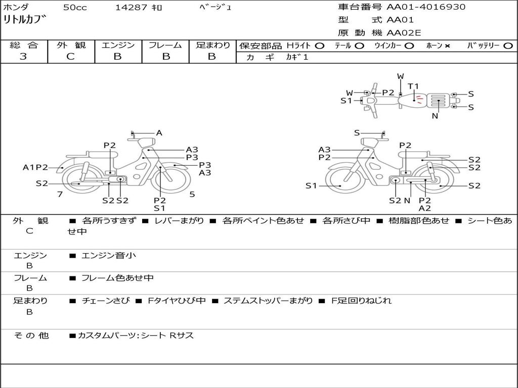 | Номер рамы / VIN | AA01-4016930 |