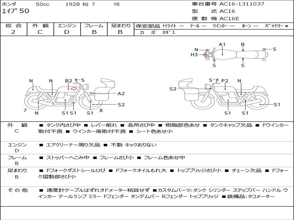 | Номер рамы / VIN | AC16-1311037 |