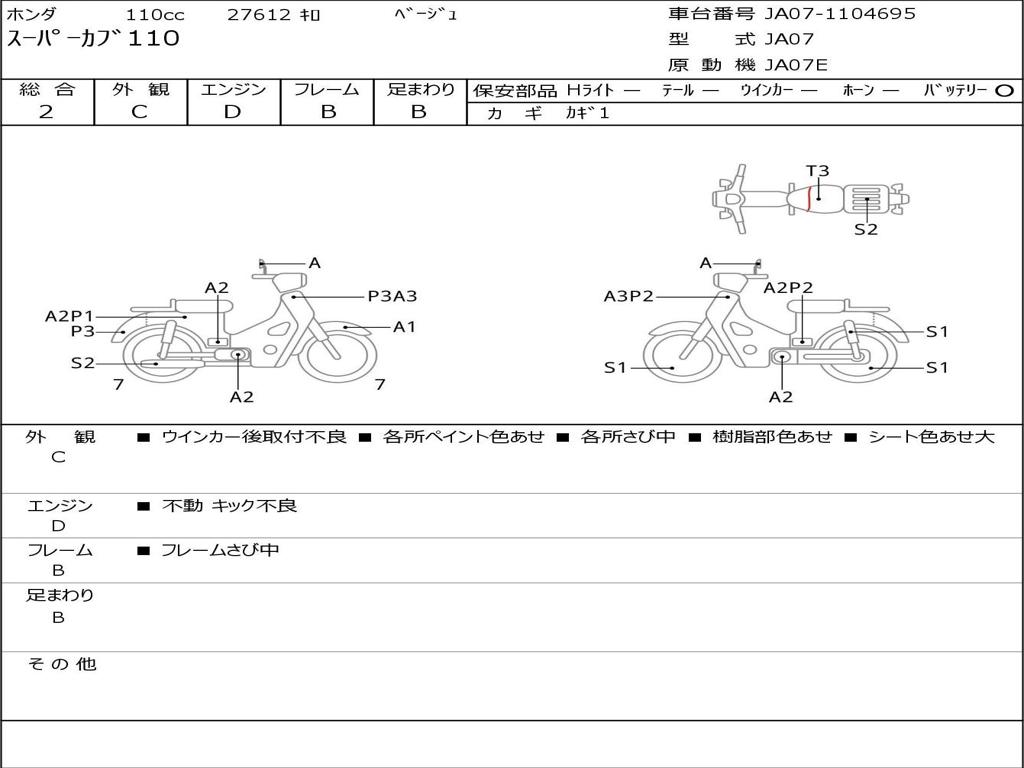 | Номер рамы / VIN | JA07-1104695 |