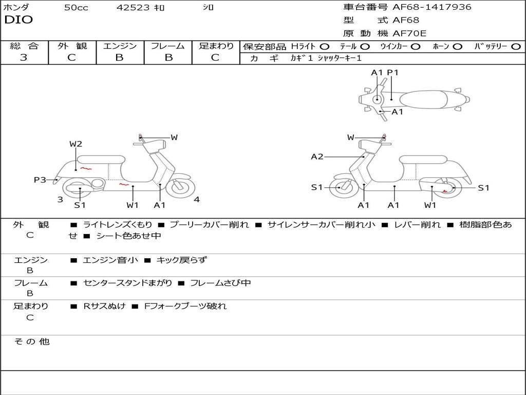 | Номер рамы / VIN | AF68-1417936 |