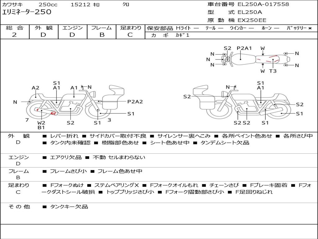 | Номер рамы / VIN | EL250A-017558 |