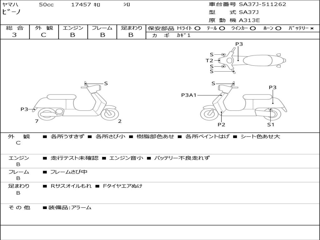 | Номер рамы / VIN | SA37J-511262 |