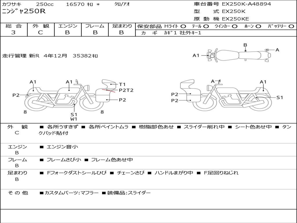 | Номер рамы / VIN | EX250K-A48894 |