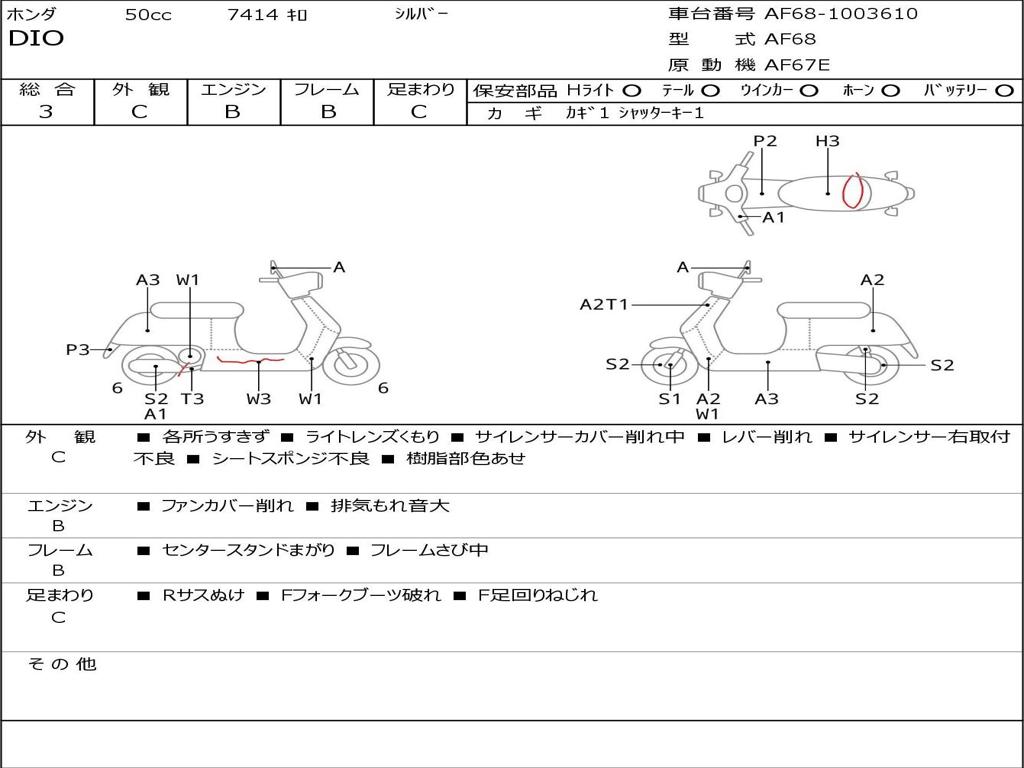 | Номер рамы / VIN | AF68-1003610 |