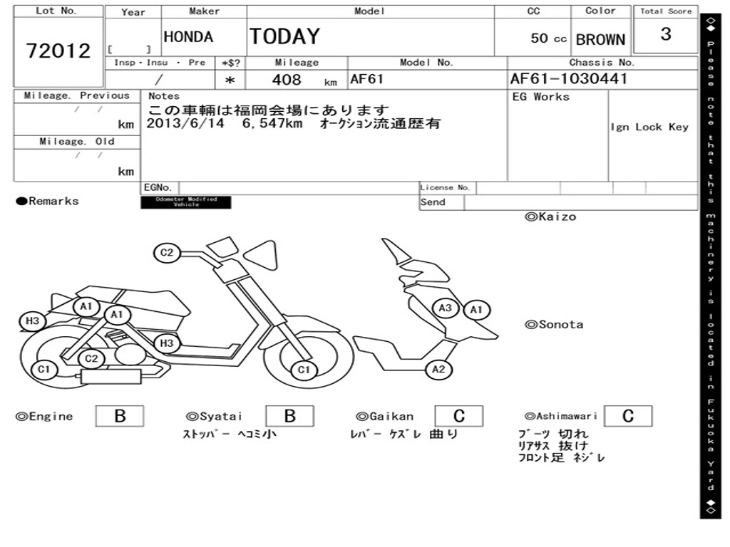 | Номер рамы / VIN | AF61-1030441 |