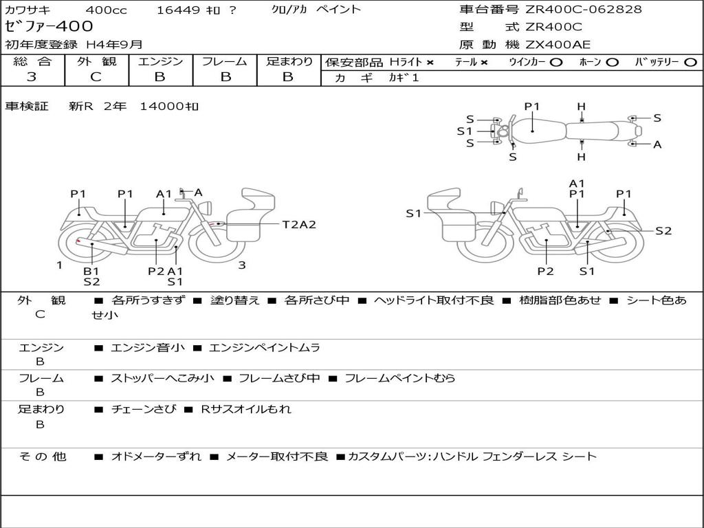 | Номер рамы / VIN | ZR400C-062828 |