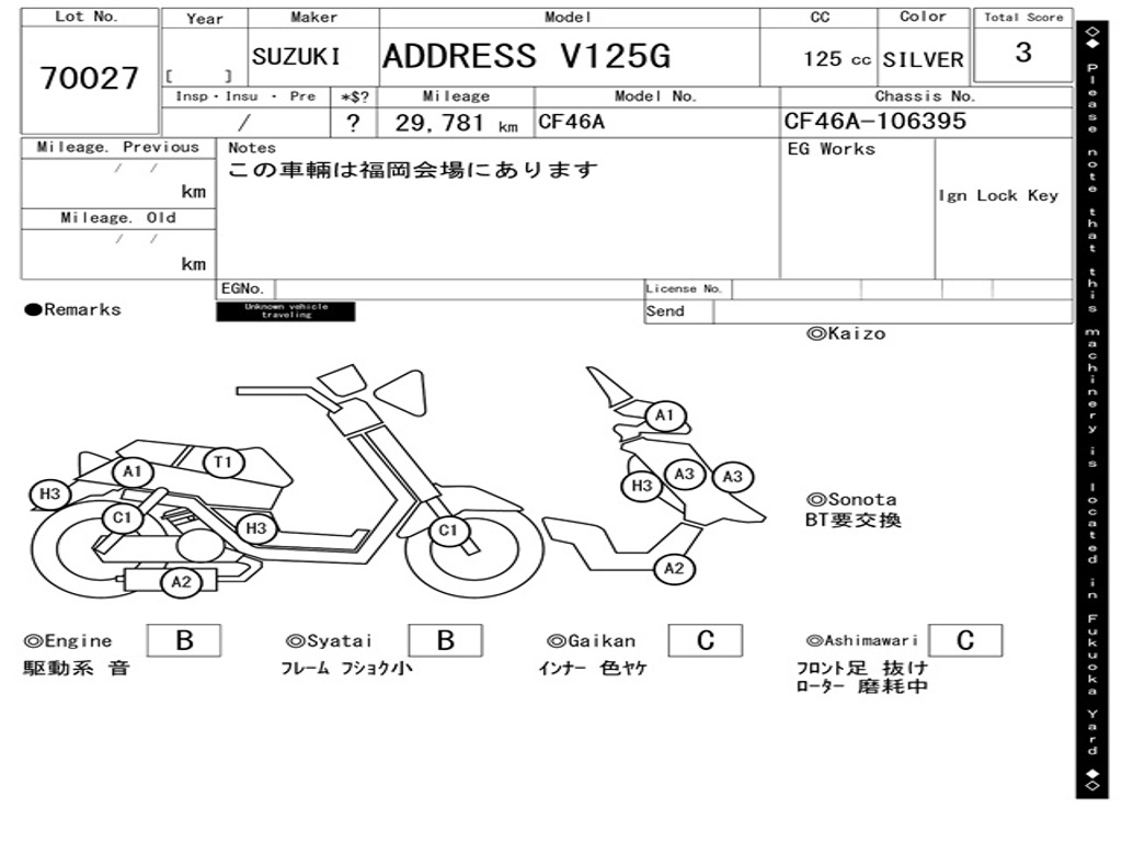 | Номер рамы / VIN | CF46A-106395 |