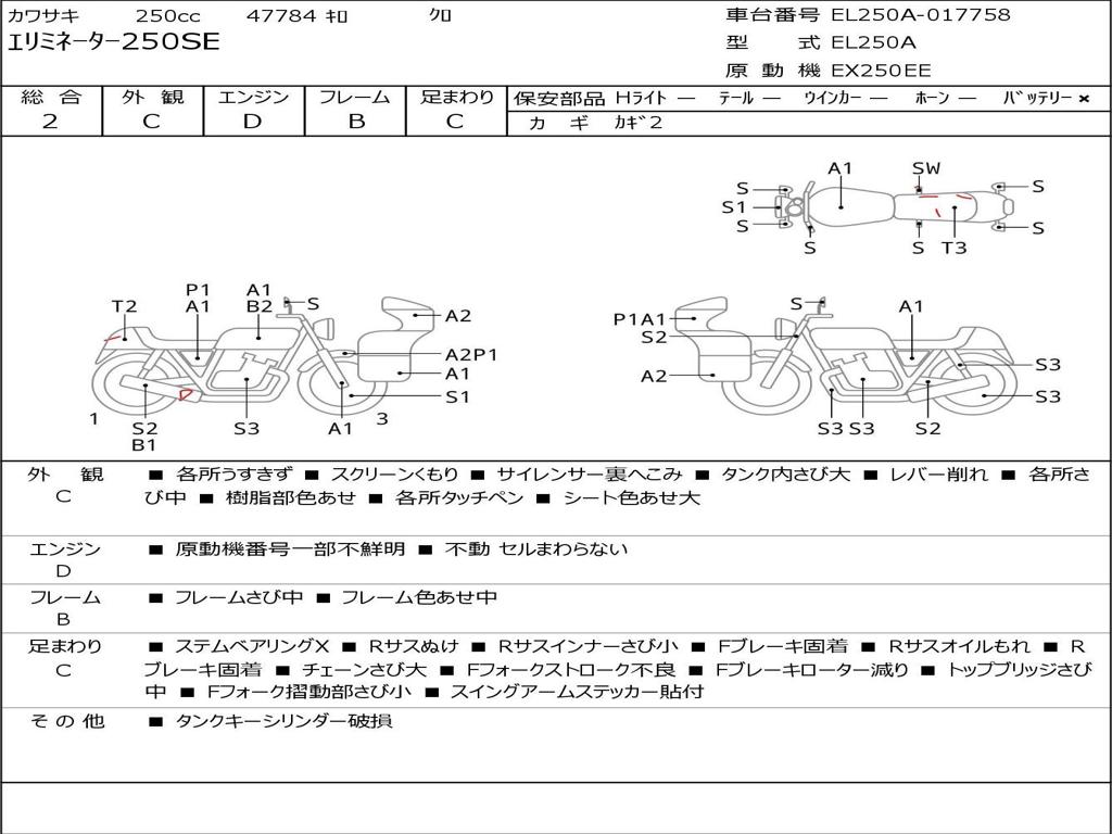 | Номер рамы / VIN | EL250A-017758 |
