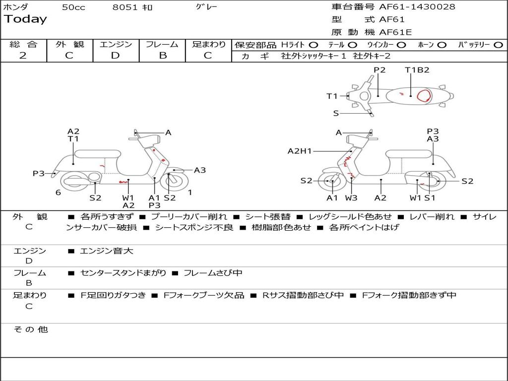 | Номер рамы / VIN | AF61-1430028 |