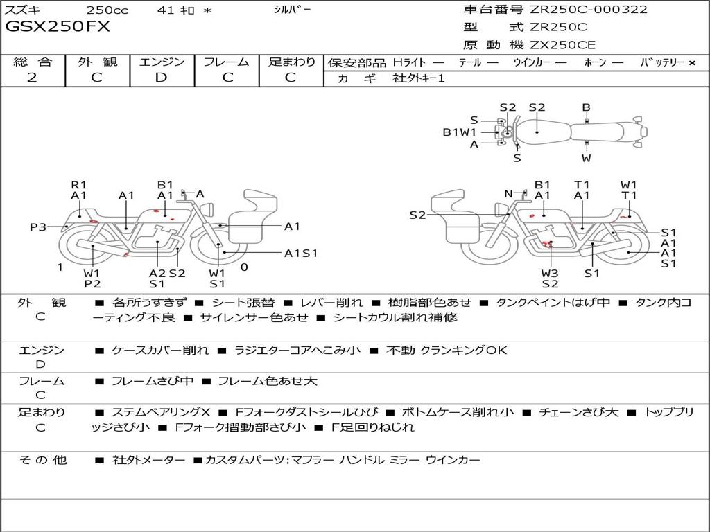 | Номер рамы / VIN | ZR250C-000322 |