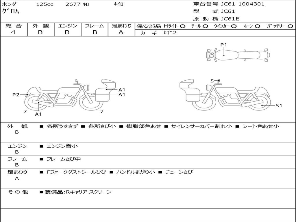 | Номер рамы / VIN | JC61-1004301 |
