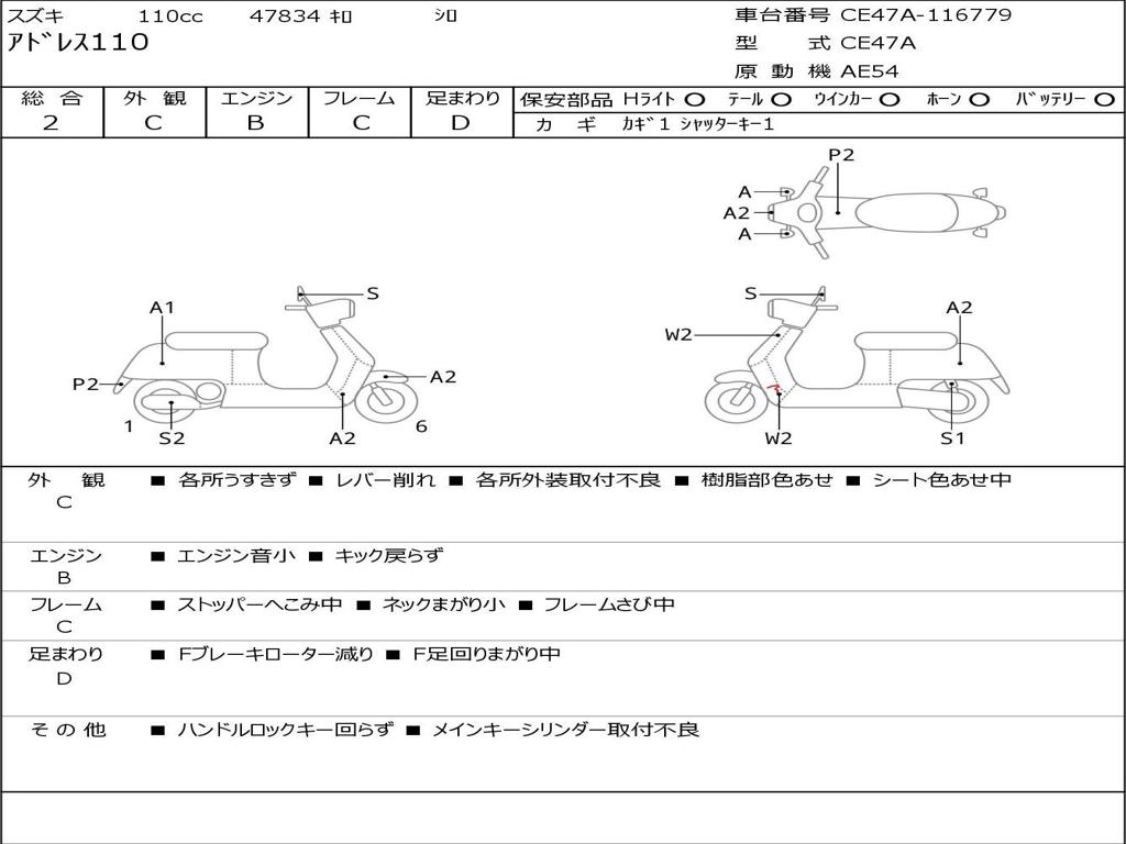 | Номер рамы / VIN | CE47A-116779 |