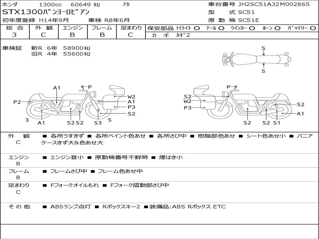 | Номер рамы / VIN | JH2SC51A32M002865 |