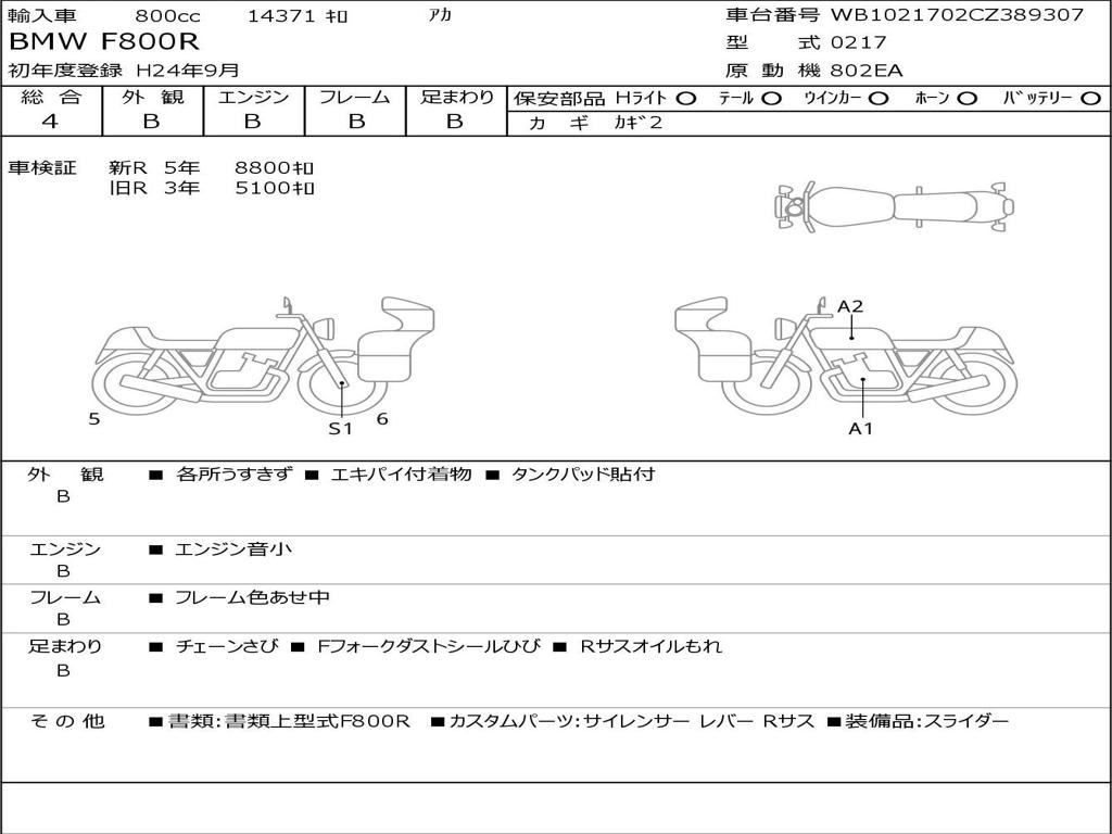 | Номер рамы / VIN | WB1021702CZ389307 |